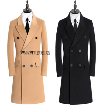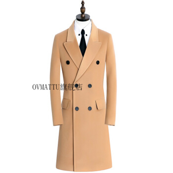 风衣>>GORANKADI香港潮牌 新品男士秋冬英伦时尚保暖羊毛羊绒双排扣长款外套修身大衣厚风衣 驼色 5XL