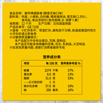 康师傅 蛋酥卷鸡蛋卷营养早餐办公室休闲零食小吃饼干蛋糕点心芝麻味 108g