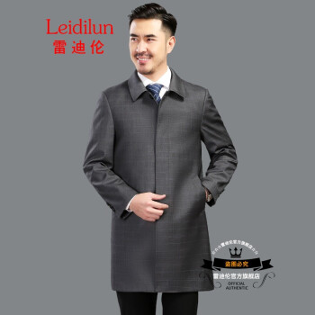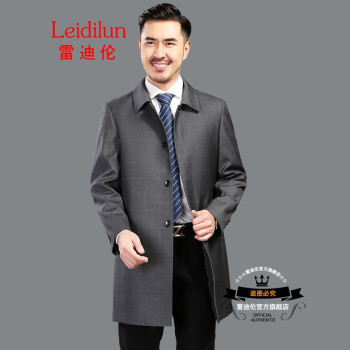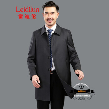 风衣>>雷迪伦 秋季新款单排扣时尚翻领外套中老年男士纯色商务休闲男装爸爸风衣 暗格灰 185