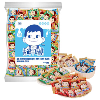 糖/糖果>>不二家 香醇牛奶糖 原味+草莓味+奶茶味+乳酸味 喜糖 糖果零食 情人节礼物(约145颗)500g/袋