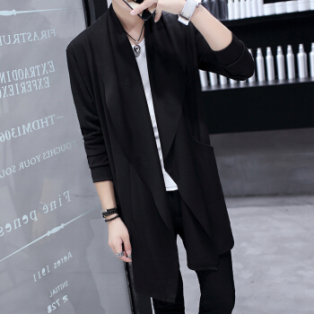 春夏季新款外套男中长款风衣薄款防晒披风男士帅气韩版修身大衣潮 M19黑色 175/XL