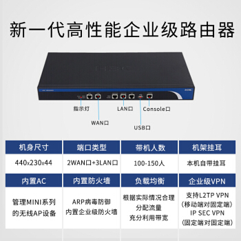 华三(H3C)多WAN口全千兆企业级VPN网关路由器 内置AC防火墙 带机量100-150 ER3200G2