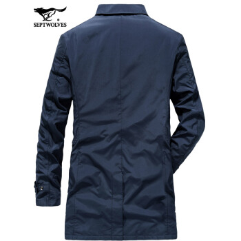 七匹狼风衣男中长款2020秋季新款中年修身韩版帅气加棉保暖休闲夹克外套潮 102(深蓝) 175/92A/XL