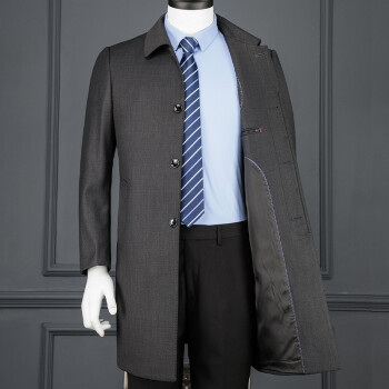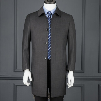 美国苹果男装风衣男商务休闲中老年大码胖子肥佬中长款褂子秋冬新款免烫外套品牌男士衣服 812深灰 50/175/92A/L