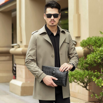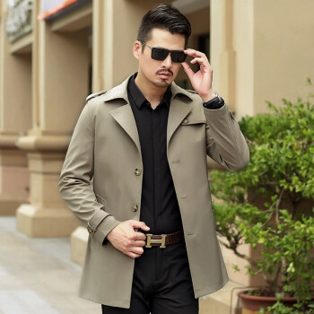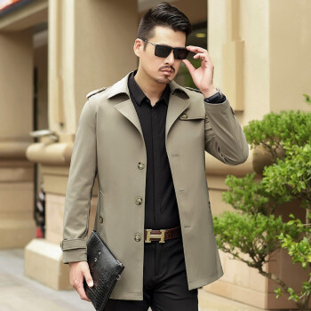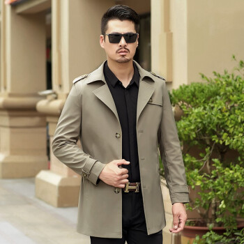 风衣>>卡帝乐鳄鱼2020秋冬新款风衣夹克男 中青年商务翻领英伦风修身秋季防风可选冬季加厚保暖男士中长款外套 卡其春秋款 XL(180)