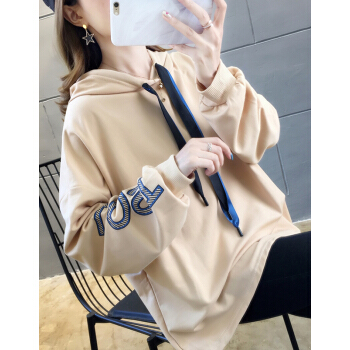 婪澈卫衣女2020秋季新款女装长袖韩版INS宽松连帽款假两件卫衣女潮 卡其色 L