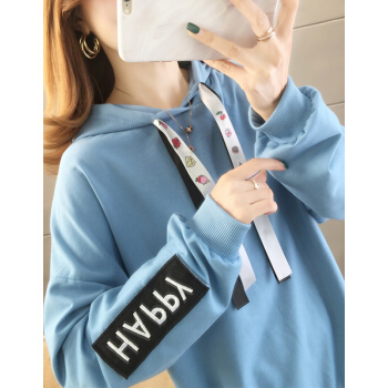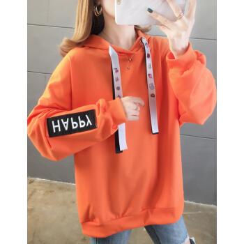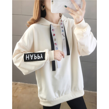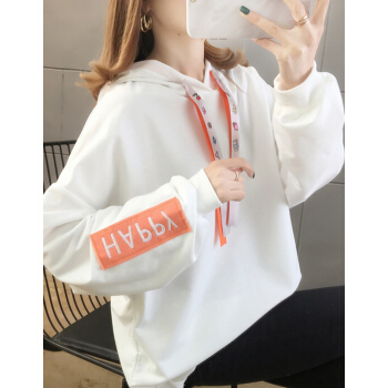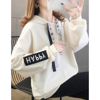婪澈卫衣女2020秋季女装新款韩版宽松上衣春秋装贴布刺绣薄款长袖外套女休闲运动装女 杏色 L