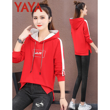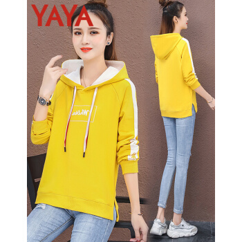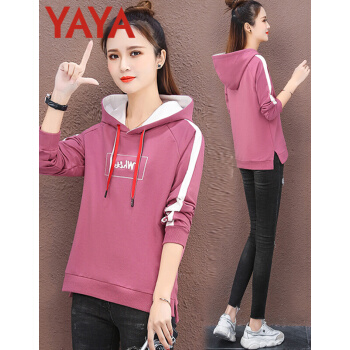 鸭鸭服饰yaya卫衣女2020秋装女装新款宽松外套女长袖运动棒球服上衣女短外套女 紫粉色 L