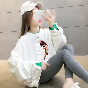 卫衣>>北极绒卫衣女2020春秋季新品休闲百搭宽松长袖卫衣女复古印花假两件上衣ins潮上衣女2535 白色 请拍正确尺码