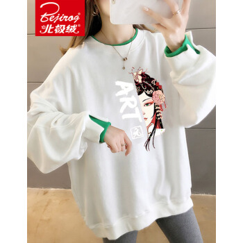 北极绒卫衣女2020春秋季新品休闲百搭宽松长袖卫衣女复古印花假两件上衣ins潮上衣女2535 白色 请拍正确尺码 |