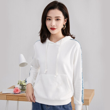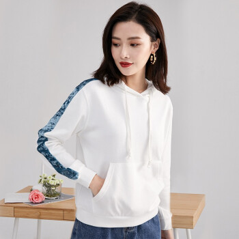 纤丝鸟 TINSINO 卫衣女2020秋季新品韩版慵懒风连帽卫衣时尚休闲长袖上衣宽松显瘦外套女 白绿色 请拍正确尺码