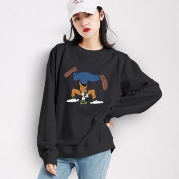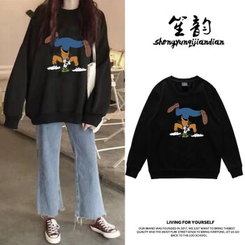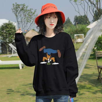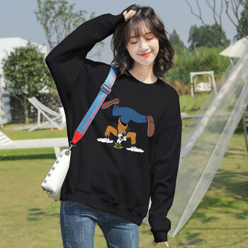 笙韵卫衣女学生2020秋冬季新款薄款长袖t恤韩版宽松怪味少女显瘦大码女装外套潮闺蜜装班服定制 黑色薄款 M(建议95-110斤内)