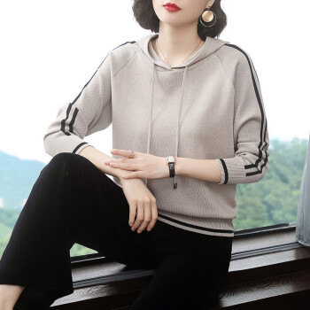 卫衣>>【精选好货】晞薇女士卫衣2020春秋装新款时尚女装韩版带帽40岁中年妈妈宽松春秋百搭优雅上衣打底衫女 杏色 请拍正确尺码或咨询客服