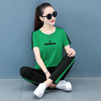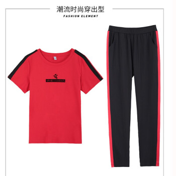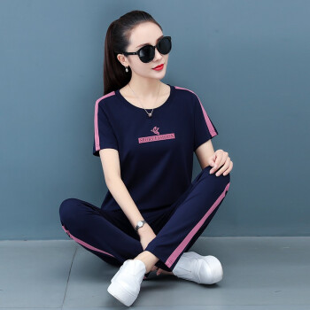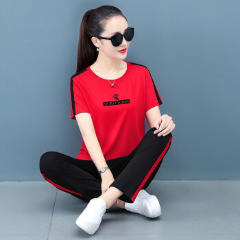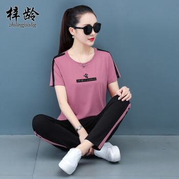 梓龄 运动套装女休闲裤女2020夏季新款圆领卫衣女T恤短袖长裤宽松显瘦洋气大码女装休闲套装女两件套 豆沙色 此码勿拍,请拍对应尺码