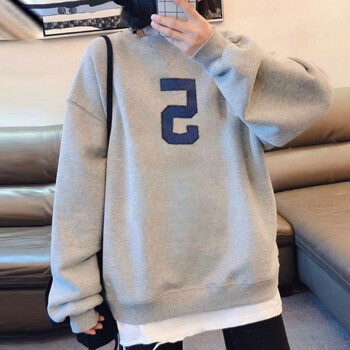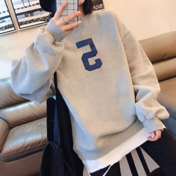 萱蓝卫衣女宽松纯棉2020秋季新款原宿风减龄拼接长袖女装上衣中长款百搭外套潮2326 灰色 XL