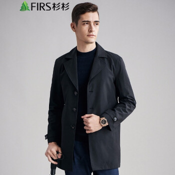 FIRS杉杉 风衣男 2020秋季新款商务休闲外套男士西装领轻薄款上衣夹克男 FDJ20382208 黑色 170
