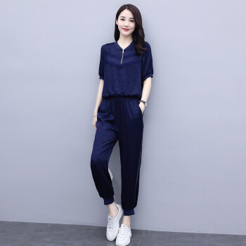 杰芭锅 卫衣套装女2020年韩版新款女夏季修身洋气时尚运动气质女神范九分裤子宽松显瘦休闲两件套潮 米白色 XL |
