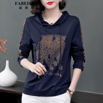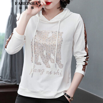 FABEISHA品牌卫衣女长袖2020秋季新款中年大码宽松休闲连帽上衣 白色 M