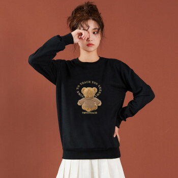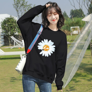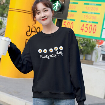 萌朵丽啦2020新款卫衣女宽松秋冬学生长袖圆领外套班服定制 MT3264黑色 M(建议90斤-110斤)
