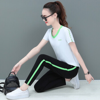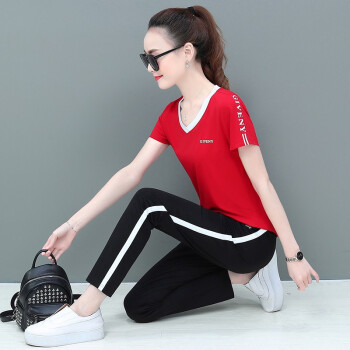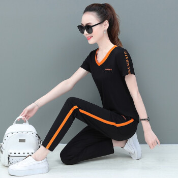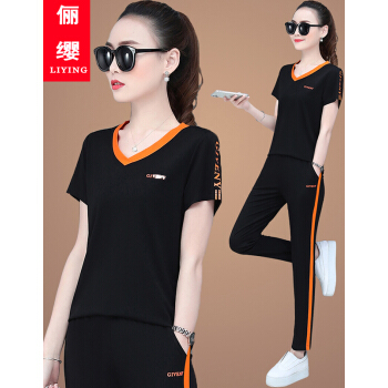 俪缨运动套装女卫衣女2020新款春夏学生胖MM韩版宽松显瘦上衣长裤跑步服减龄休闲套装两件套大码女装潮 黑色 此码勿拍,请拍自身对应码数