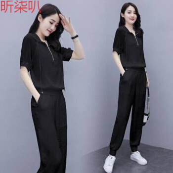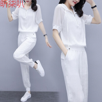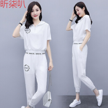 昕柒叭卫衣女减龄百搭显瘦抽绳连帽纯色上衣宽松大码九分裤两件套女 1117白 L