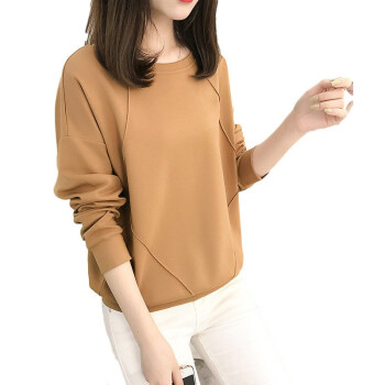 佰可衣2020新款圆领卫衣女春秋韩版宽松套头打底上衣女潮流 A字母驼色 M