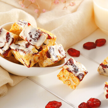 百草味 早餐沙琪玛休闲零食蛋糕办公室 蔓越莓味牛轧奶芙160g/袋
