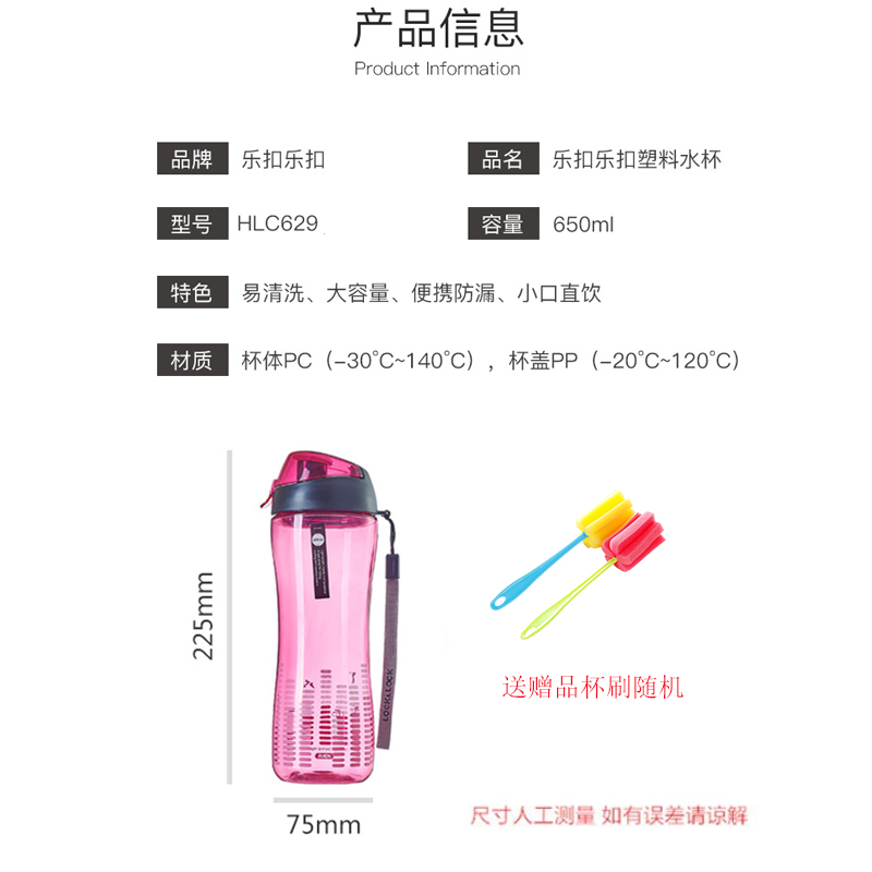 650ml弹扣防尘便携塑料水杯 买就送杯刷【塑料/颜色自选】