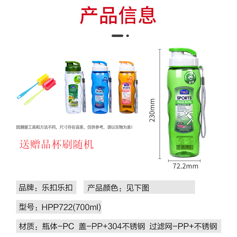 700ml男女学生健身水壶运动便携塑料水杯 买就送杯刷【塑料/颜色自选】