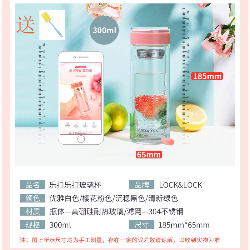 便携耐热防烫玻璃水杯300ml 送杯刷【玻璃/颜色自选】