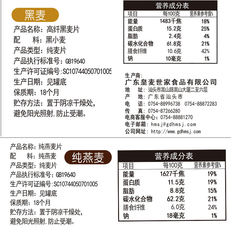 快熟纯麦片&高纤黑燕麦片组合装