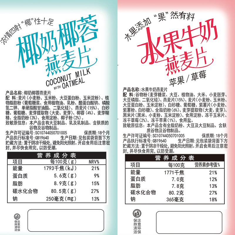 水果牛奶&椰奶椰蓉燕麦片组合装