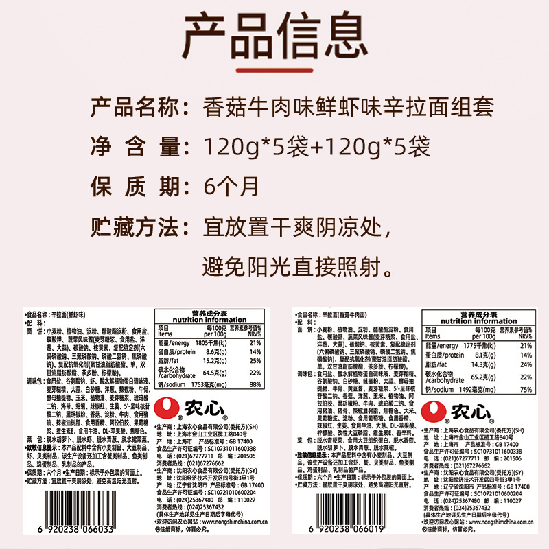农心辛拉面香菇牛肉味&农心辛拉面鲜虾口味组合装