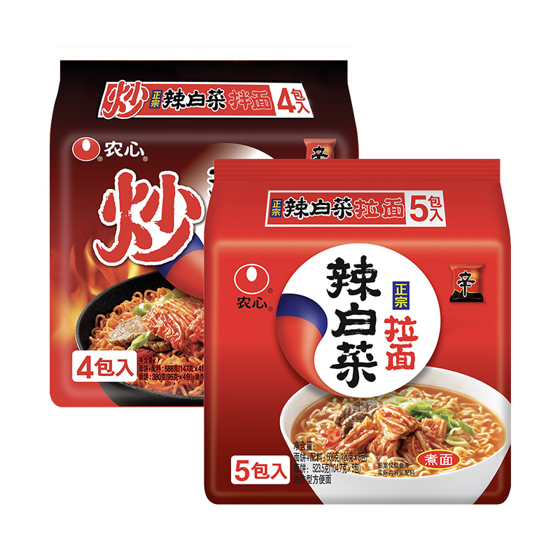 农心辣白菜拉面方便面&农心炒辣白菜拌面(含韩国切片泡菜)即食面