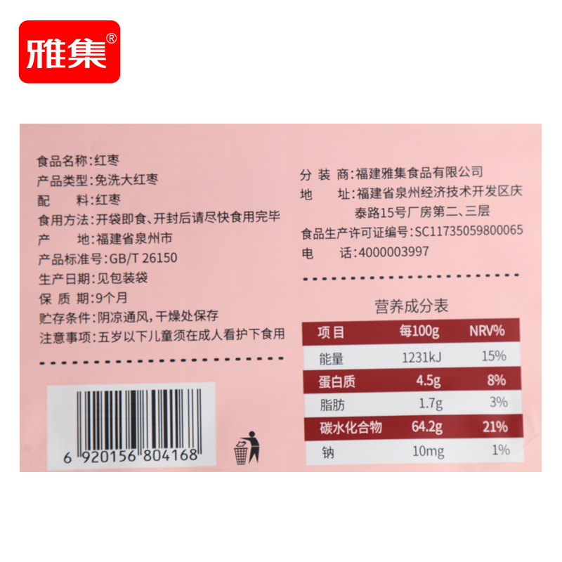 雅集红枣500g*10袋
