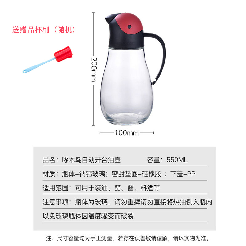 厨房油瓶自动开合玻璃防漏油壶-买就送杯刷【玻璃/颜色自选】