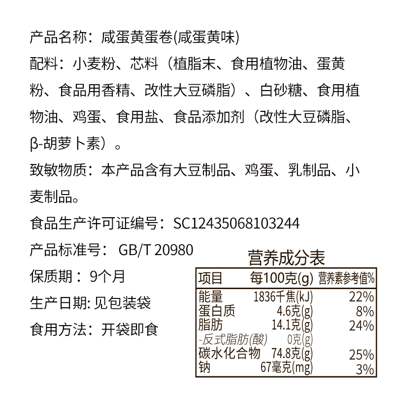 泓一咸蛋黄卷(送咔吃威化饼干)