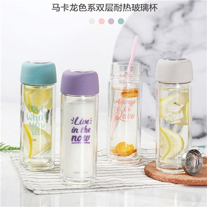 双层耐热300ml马卡龙色系玻璃杯水杯【玻璃/颜色自选】