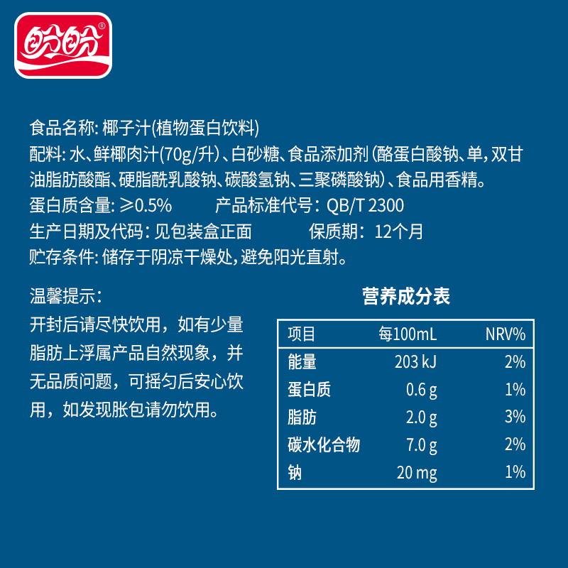 盼盼生榨椰子汁