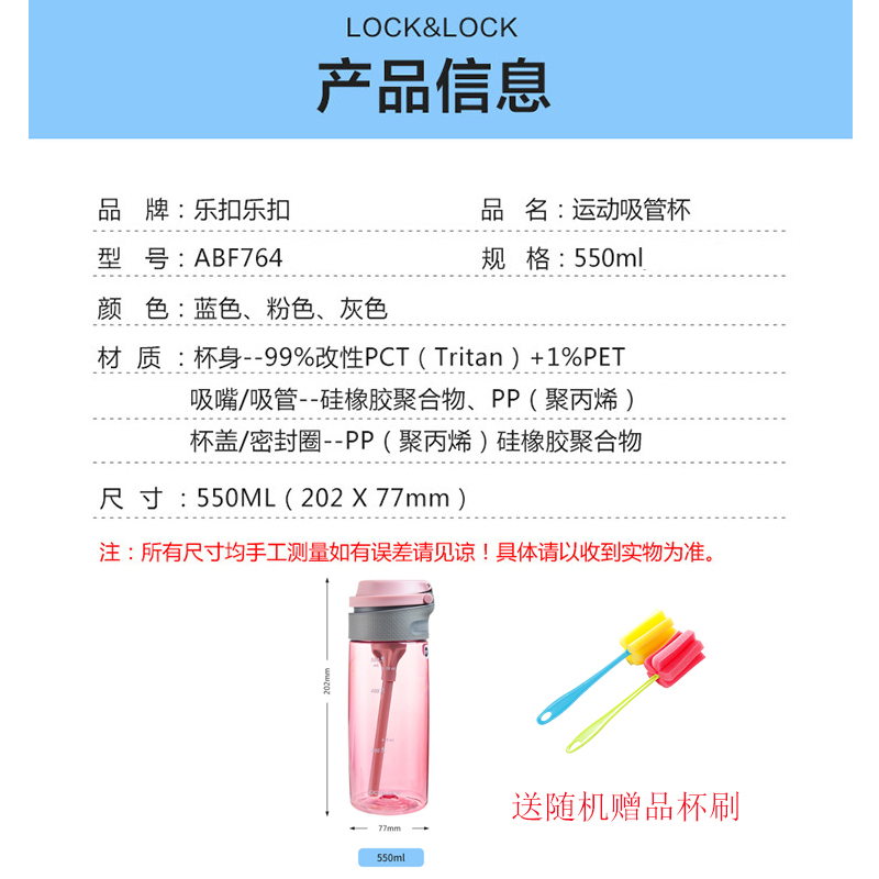 一键式弹跳大容量运动便携吸管水杯550ml 买就送杯刷【塑料/颜色自选】
