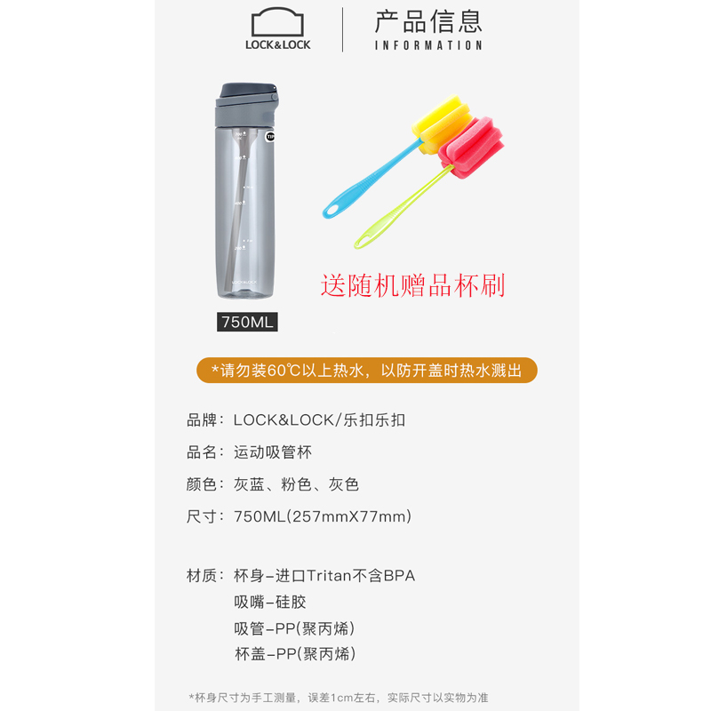 一键式弹跳大容量运动便携吸管水杯750ml 买就送杯刷【塑料/颜色自选】