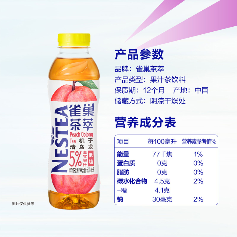 雀巢茶萃桃子清乌龙茶500ml*15瓶整箱