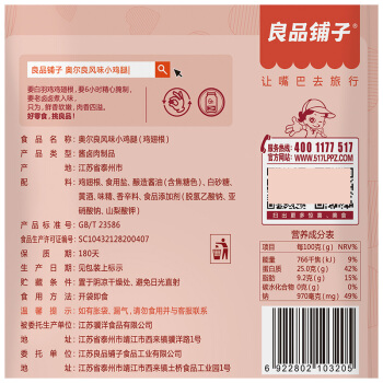 良品铺子 奥尔良小鸡腿休闲零食卤味鸡肉熟食网红小吃肉干肉脯108g