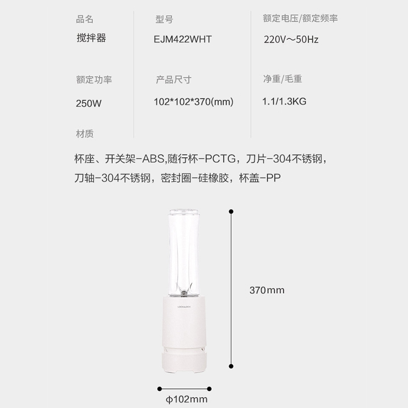 3杯旋转式家用便携式搅拌机随身奶昔果蔬汁杯电动榨汁机【不锈钢/白色】