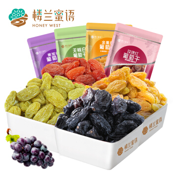 楼兰蜜语 四色葡萄干900g 蜜饯果干 玫瑰红黑加仑金凰后无核白葡萄干 新疆特产