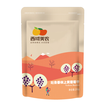 西域美农 树上黄葡萄干250g 无硫熏孕妇零食 开袋即食已灭菌 新疆特产 无籽大颗粒提子干