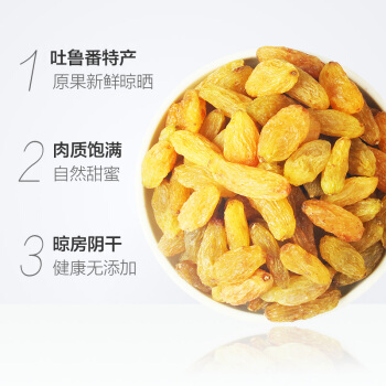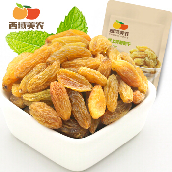 其他休闲食品>>西域美农 树上黄葡萄干 无硫熏 已灭菌开袋即食 新疆特产无籽蜜饯 大颗粒零食提子干158g