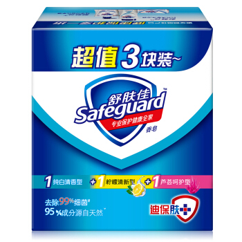 香皂>>舒肤佳香皂115g * 12块套装 纯白清香+柠檬清新+芦荟水润 *4 抑菌99.9% 温和洁净 抑菌 (新老包装随机发货)