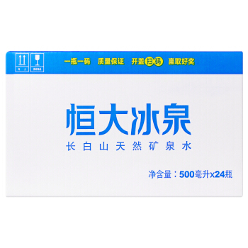 恒大冰泉 长白山天然弱碱性矿泉水 500ml*24瓶 整箱装