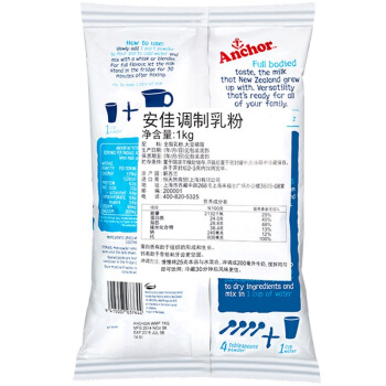 奶粉>>安佳(Anchor) 新西兰原装进口 全脂乳粉 全脂奶粉 调制乳粉 1KG袋装